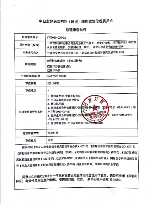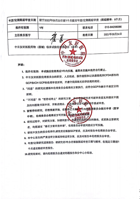 項目所屬的有效性RCT臨床試驗研究于2021年9月24日通過組長單位(中日友好醫(yī)院)的倫理審查,并于9月27日取得倫理批件。其他研究中心正以組長單位倫理批件為前置條件有序完成項目立項和倫理立項,近日已有4家分中心陸續(xù)拿到倫理批件,其中白山市中醫(yī)院率先完成兩例受試者入組,標志著有效性RCT臨床試驗研究項目病例入組工作正式開始。