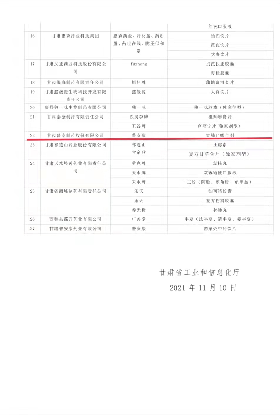 喜報!喜報!宣肺止嗽合劑進(jìn)入隴藥大品種大品牌培育目錄(2021版)