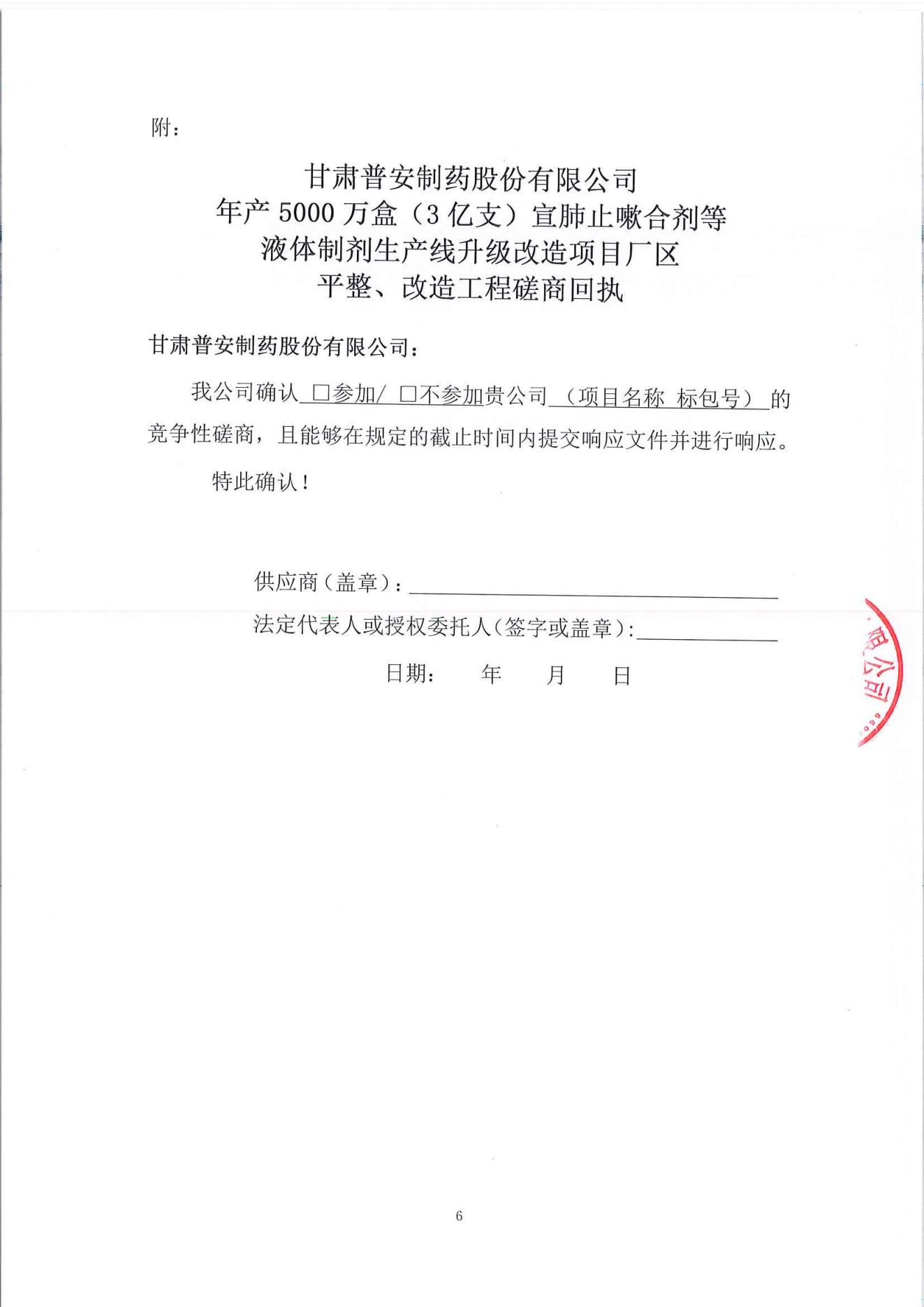 甘肅普安制藥股份有限公司年產5000萬盒(3億支)宣肺止嗽合劑等液體制劑生產線升級改造項目廠區平整、改造工程競爭性磋商公告