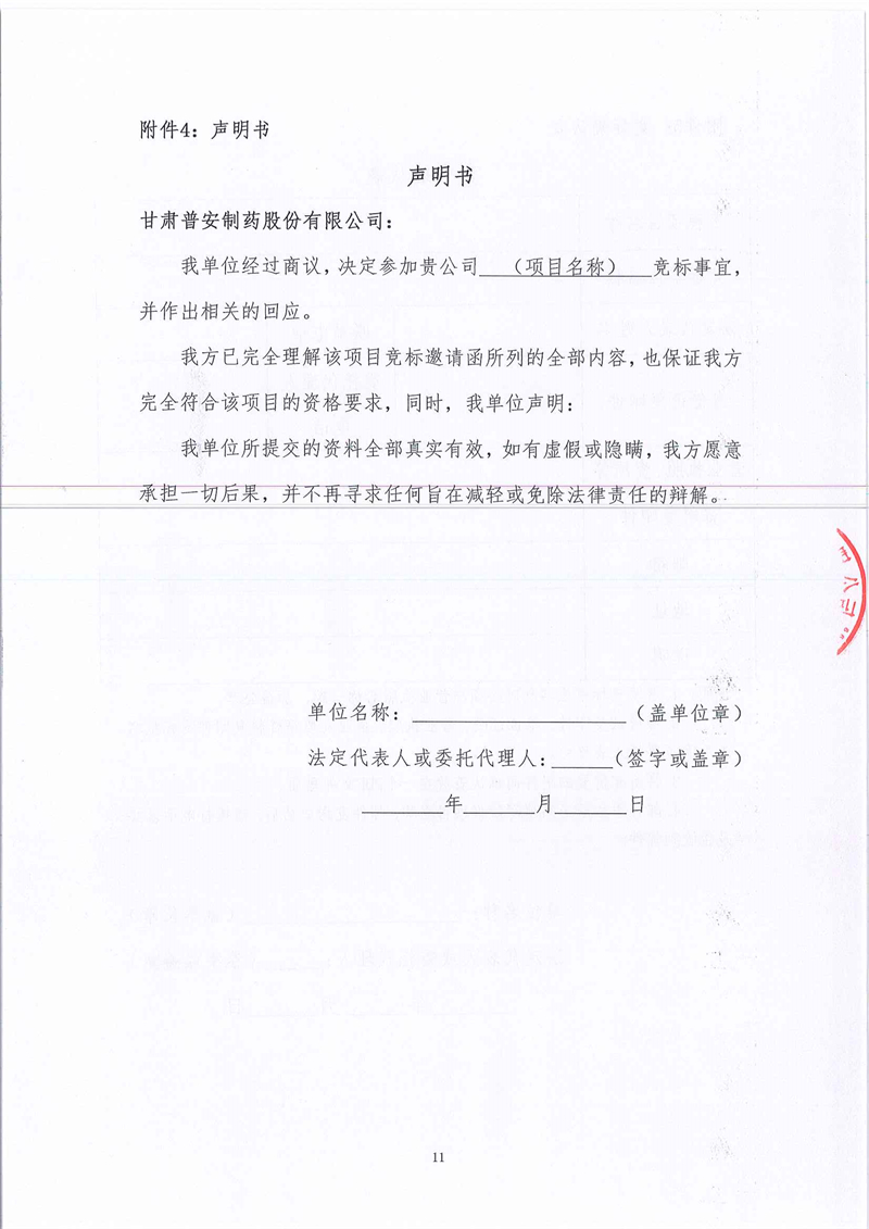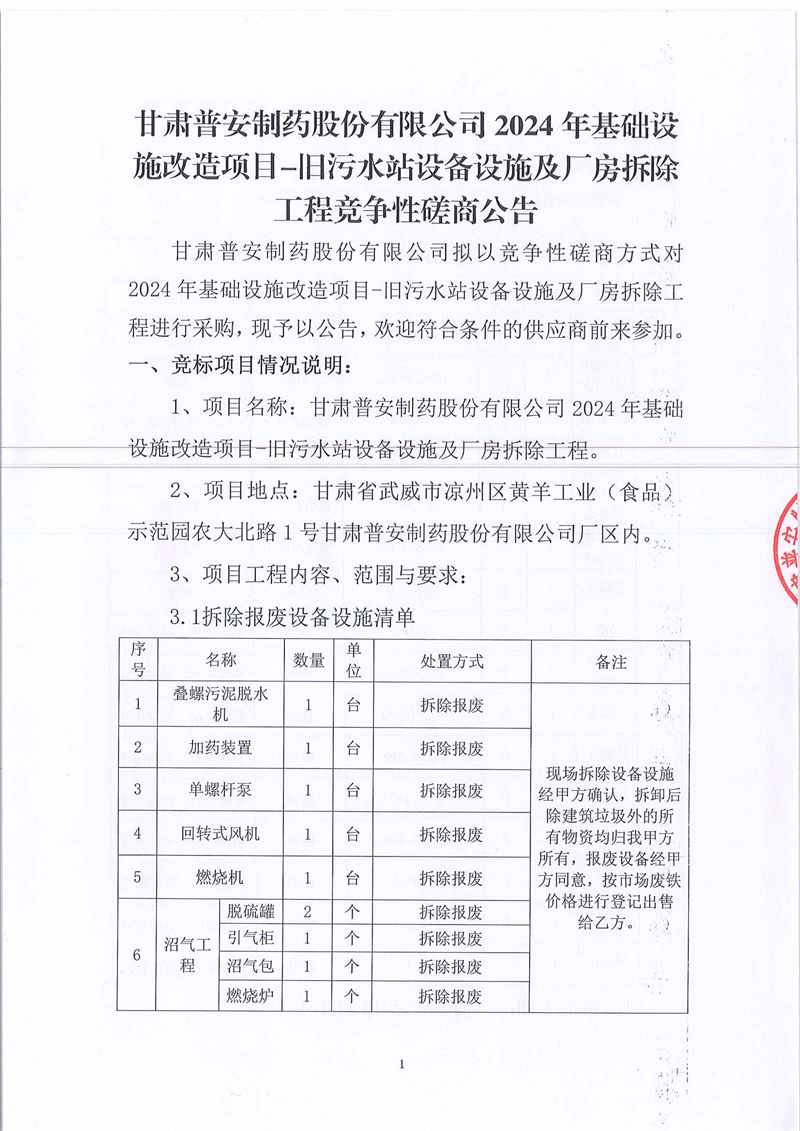 甘肅普安制藥股份有限公司2024年基礎(chǔ)設(shè)施改造項目-舊污水站設(shè)備設(shè)施及廠房拆除工程競爭性磋商公告