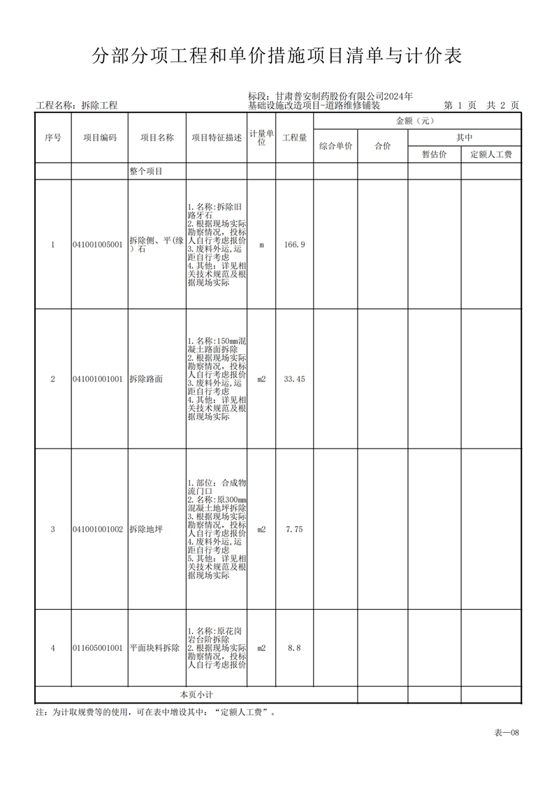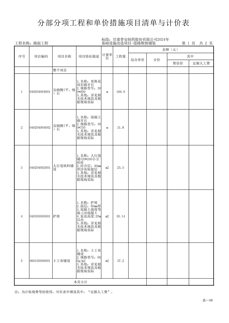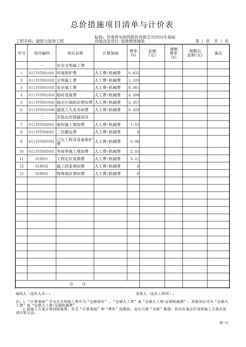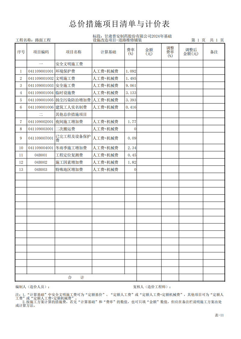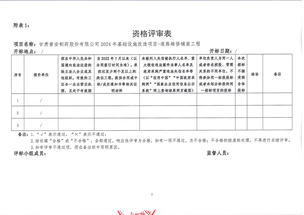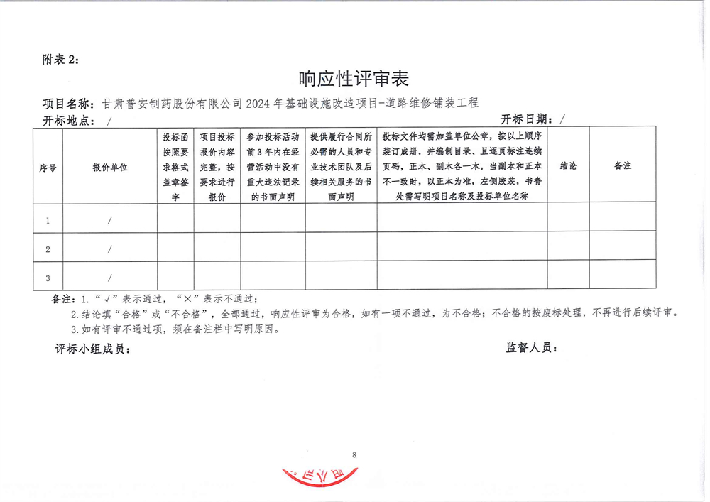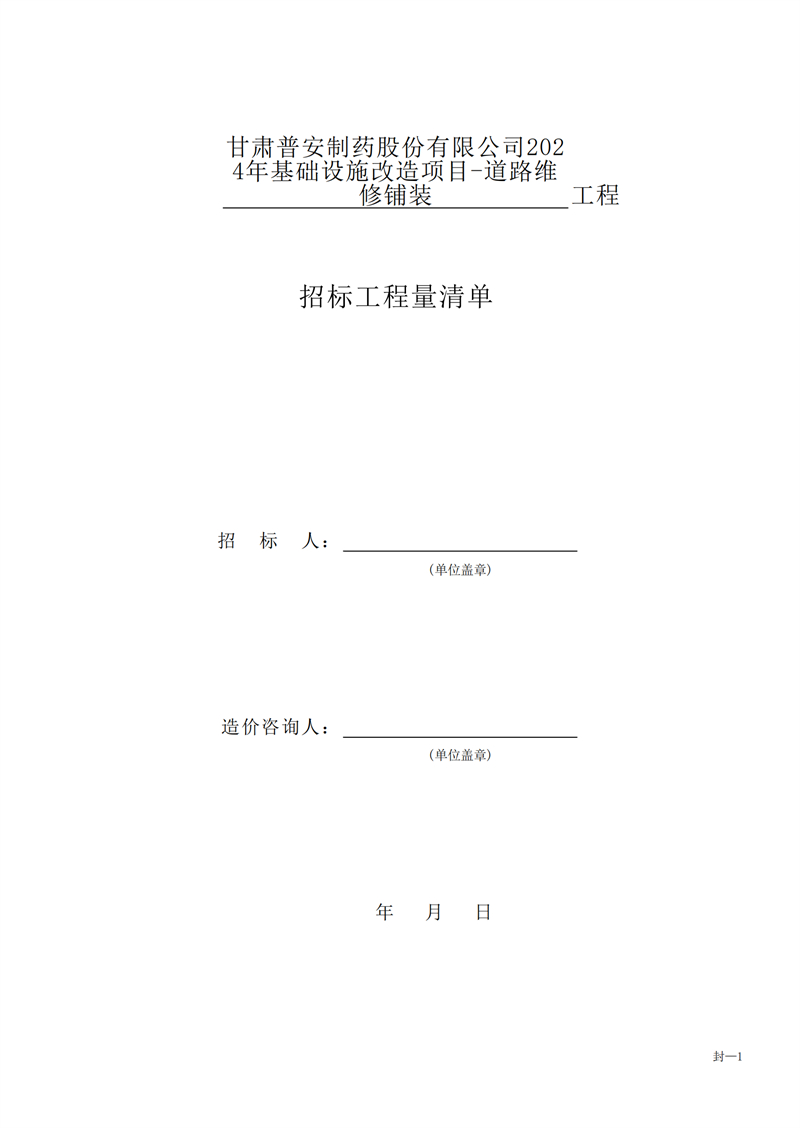 甘肅普安制藥股份有限公司2024年基礎設施改造項目-道路維修鋪裝工程招標公告